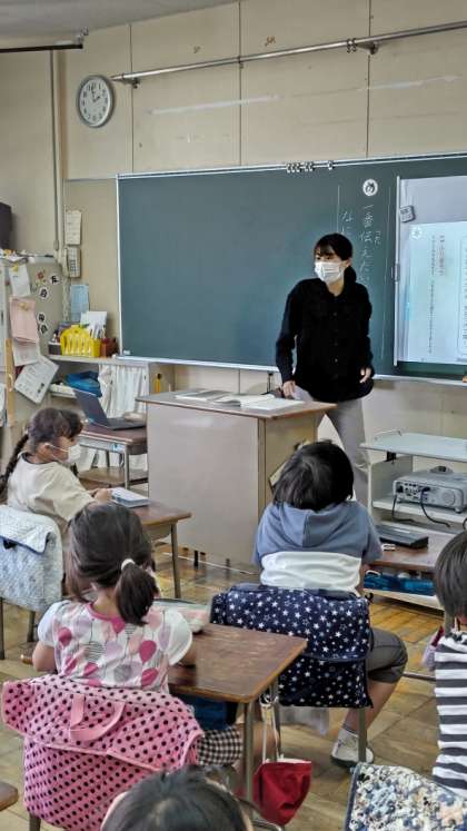 [3年生国語]そのあとは「たからものをしょうかいしよう」の学習です。みんなの前で発表する準備です。