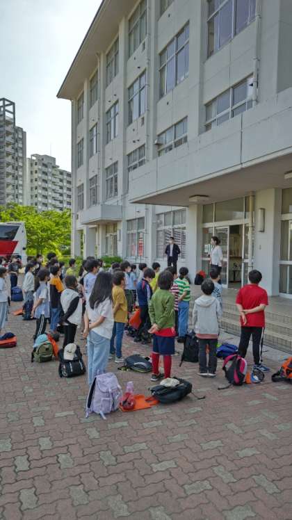 6年生が予定より少しだけ早く帰校しました。交通規制を心配しましたが、逆に車が少なく見学場所をスムーズに回れたようです。