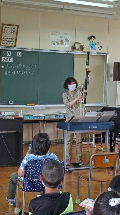 (先生がいろんな大きさのリコーダーを見せてくれました)