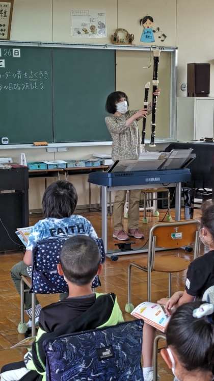 (大きいリコーダーがあることにびっくりしました。みんなが使っているのはソプラノリコーダーと言うんだね)