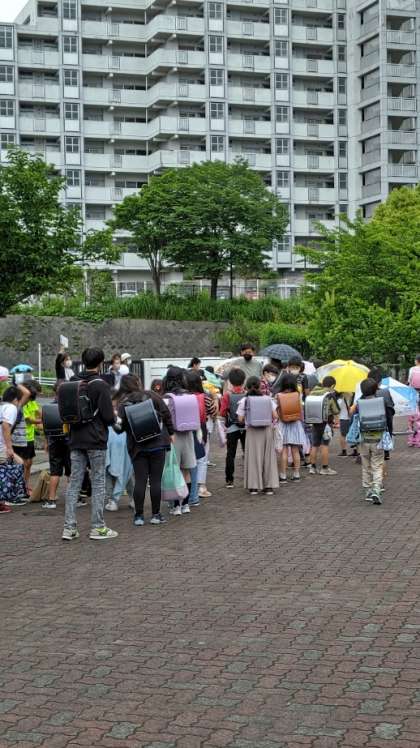 (地区班のみんなで、気を付けて帰りましょうね)
