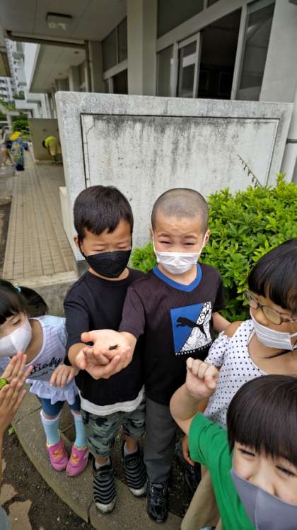(おめでとう!・・・畑の横ではクワガタをつかまえたようです)