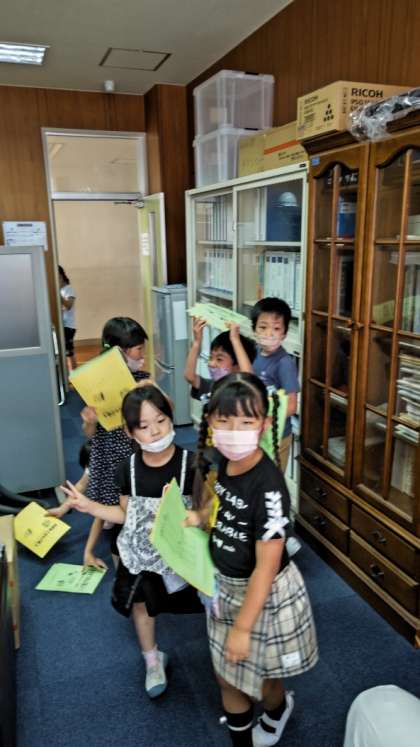 休み時間に校長室で1年生の「だんご名人検定」が始まりました。たしざんの検定です。例えば「5だんご」なら「2と□」「□と1」「4と□」「3と□」の□に数字を入れながら読んでいきます。今日すでに校長のハンコをもらった人もいます。1年生のみなさん、がんばりましょうね。校長室で待っていますよ。