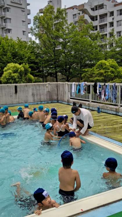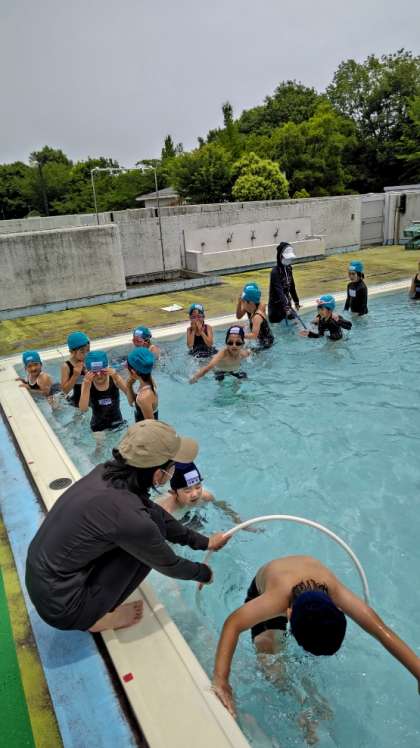 (プールは楽しいね)