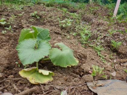 昨年度も学校裏にある畑に給食で使用したかぼちゃの種を植えて、食べるほどには大きくなりませんでしたが、ハロウィンでジャック・オー・ランタンとして飾り付けられた、かぼちゃ、の他に今年は自宅で本格的に畑を行っている調理員さんが余ったじゃが芋の種芋を植えました。