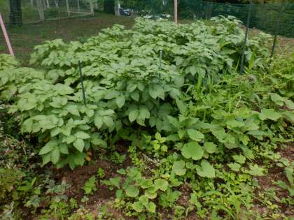 じゃが芋はかなり育って収穫が楽しみです、地産地消から一歩進んだ学産学消ができるといいですね。