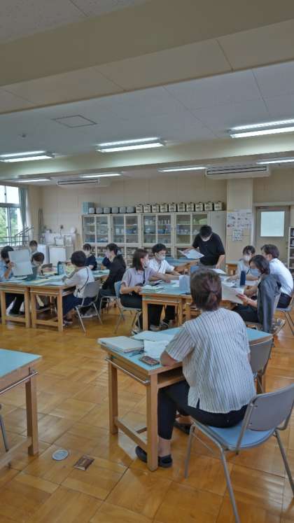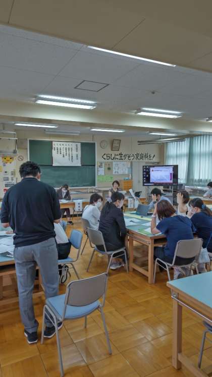 研究授業の後は先生たち全員の勉強会です。講師の先生をお呼びして今日の授業を振り返り、ご指導をいただきます。