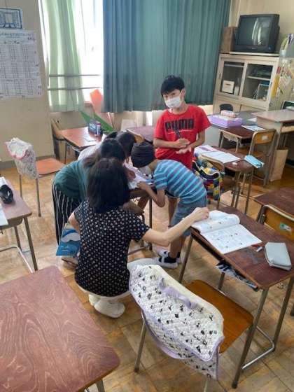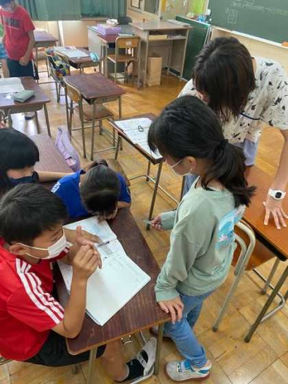 みんなで協力して辺の長さを調べたり、角の大きさを測ったりしています。