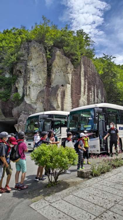 10:15 本日最初の見学場所、大谷資料館に着きました。大谷石の石切場です。