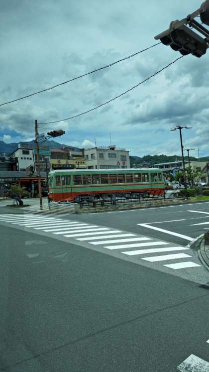 (東武日光駅前の旧路面電車。窓の奥には旧日光市役所)