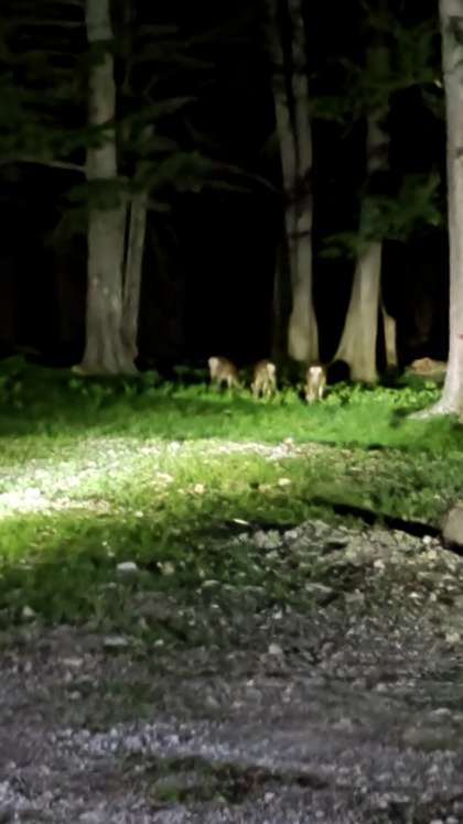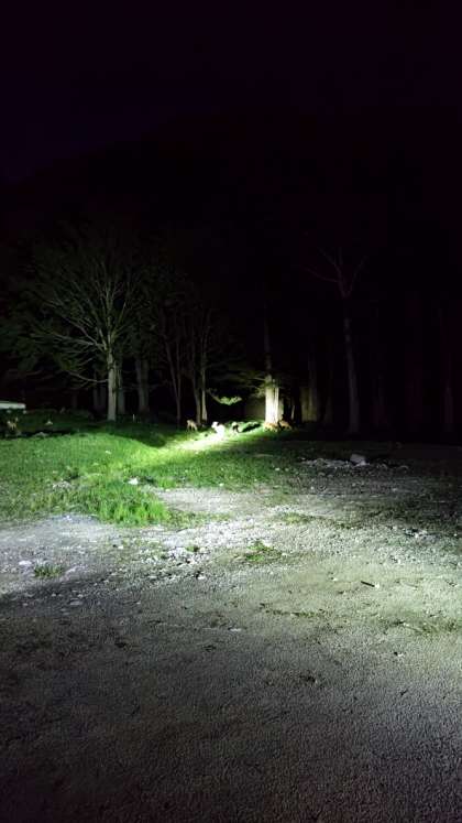 (ちょっと歩いて明かりを照らすと、本当に野生の鹿がいました。みんなびっくり)