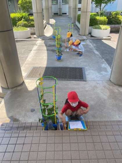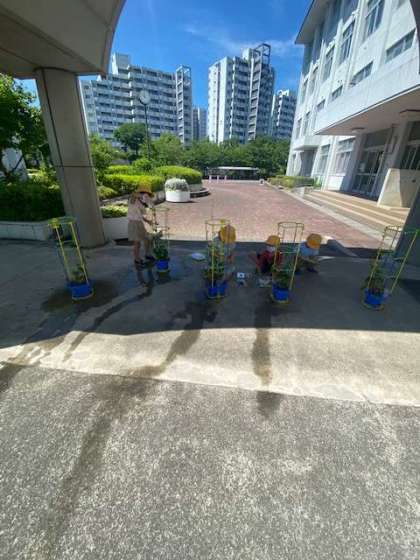 梅雨明けしたようで、渡り廊下の屋根の下で活動です。