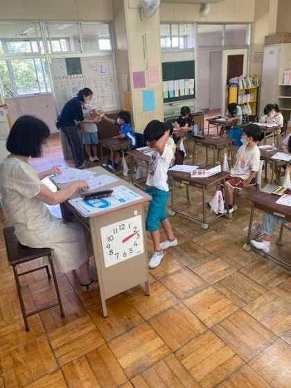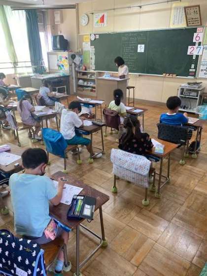 担任が6年生と日光移動教室に行っているため、他の先生と勉強しています。