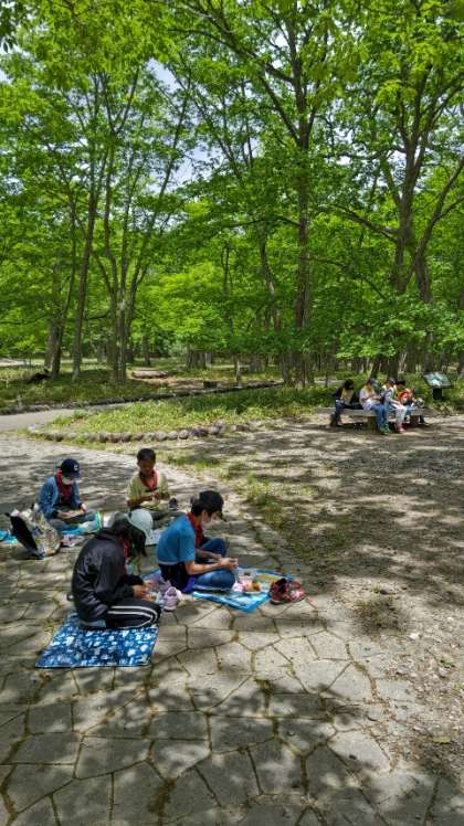 (おにぎり弁当です。ハンバーグもウインナーも付いています)