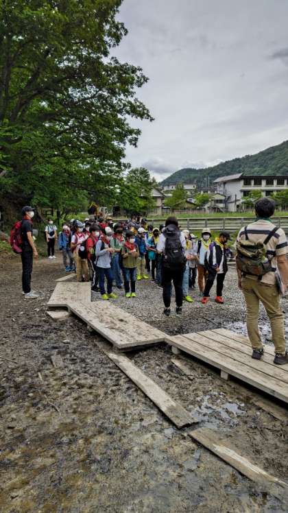 15:45 歩いて湯元温泉の源泉に着きました。みんながけっこう楽しみにしていた10円玉実験の始まりです。