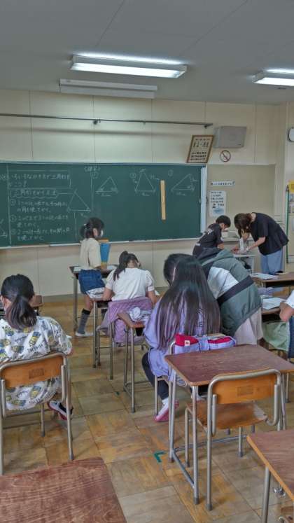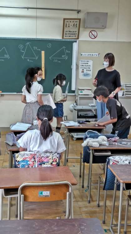 [5年生算数]「合同な図形」の学習です。合同な三角形をかく練習をしています。