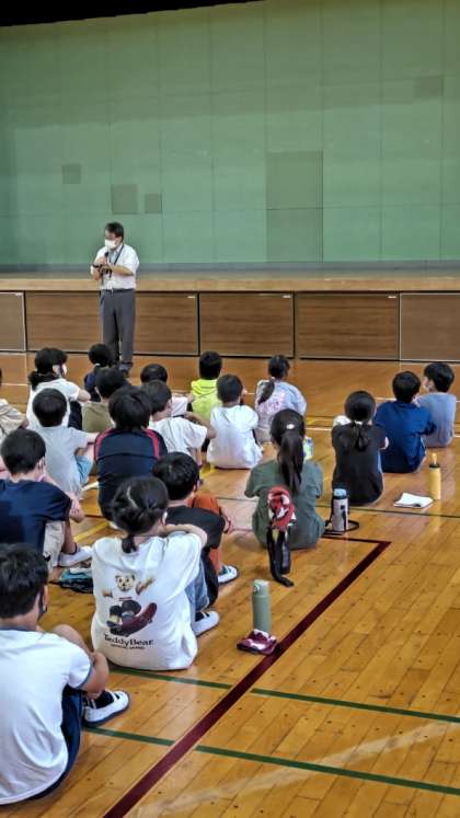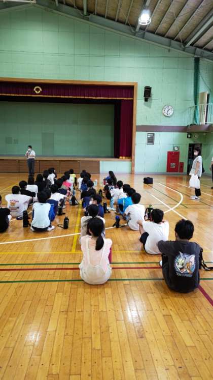 [6年生中学校見学]今日は宮上地区の「小中一貫教育の日」です。宮上小と下柚木小の6年生が宮上中へ行き、授業を参観しました。まずは宮上中の校長先生からお話を聴いています。