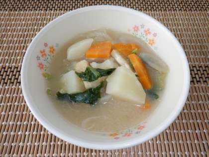 今日は先週、収穫した じゃが芋を はっちくんのみそ汁で使用しました。