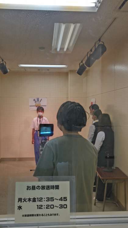 職場体験のみなさん、給食時の「お昼の放送」では、全校児童にテレビを通してご挨拶してもらいました。とても良い小中一貫教育の取組となりました。