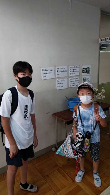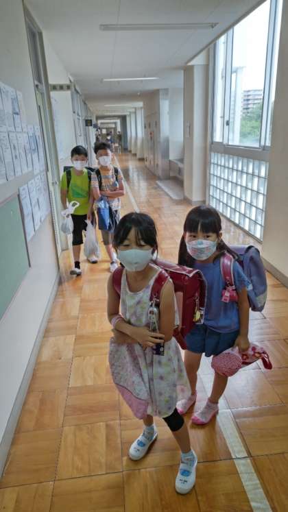 8時15分になりました。久しぶりの朝の職員室・校長室前の様子です。子供たちの元気な挨拶が響いています。
