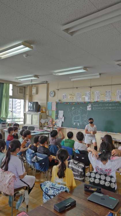 廊下を歩いていると、盛り上がっている教室がありました。5年生がお楽しみ会をしています。高学年ともなると、さすが芸達者です。みんなで楽しんでいます。