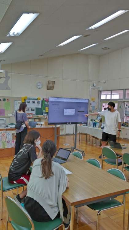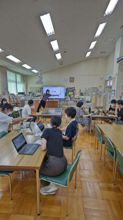情報教育担当が講師役となり、研修を進めます。様々な発展的利用が可能なことがわかります。これからも、教員もすすんで学んでいきます。