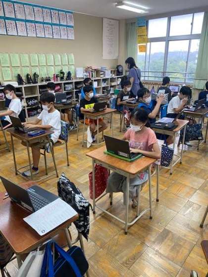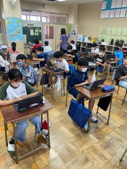 ページ割などを行い、分担しながらクロームブックを使って作成していました。