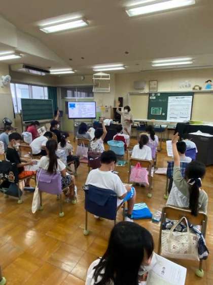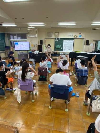 民謡を聴いて、気がついたことを発表しています。テンポがゆっくり、楽器が違う、歌い方に特徴がある等、たくさん発見しました。