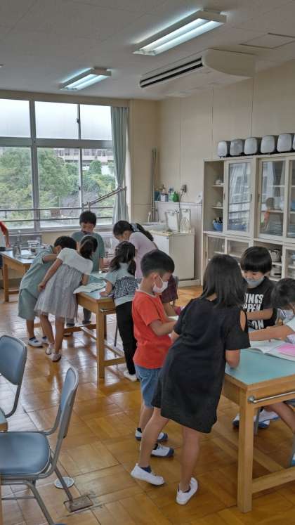 (家庭科室にはかさを計れる入れ物がたくさんありますね)