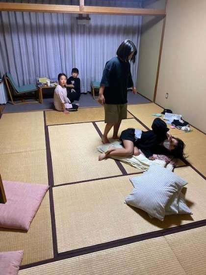 すっかり片付いた部屋もあれば、まだ眠くてうずくまっている班もありました。