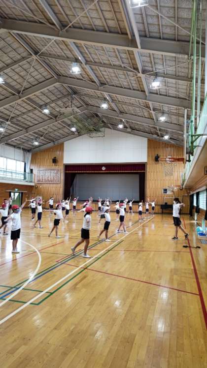 [3年生4年生体育]中学年が体育館に集合です。運動会の表現種目の練習です。さあどんなことをするのでしょうか。