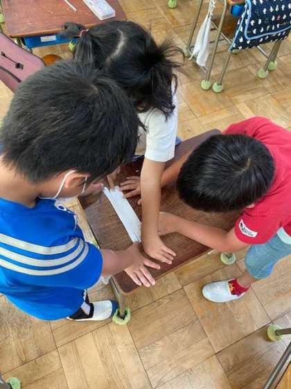 「ほら!ぼくの筆箱の長さはこれだよ!」