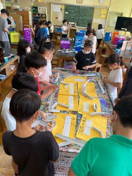 ビー玉を転がすレールを工夫しながら楽しいコースを作っていました。