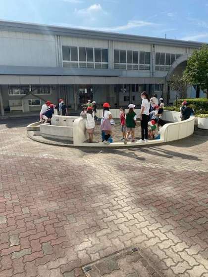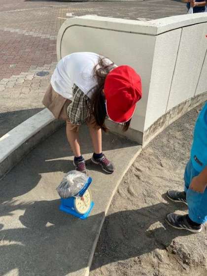 重さの学習から発展して、実際に1Kgの重さを砂場で作っていました。