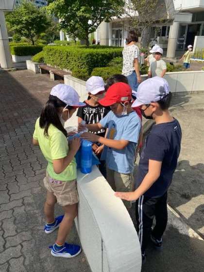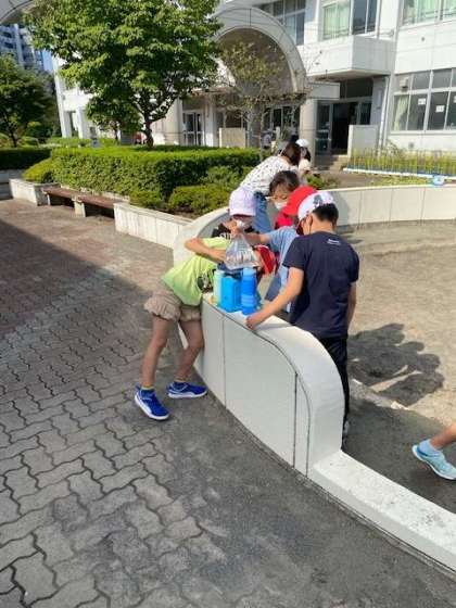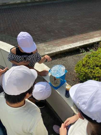 お水を入れた袋はプルプルして、上手く台に乗りません。