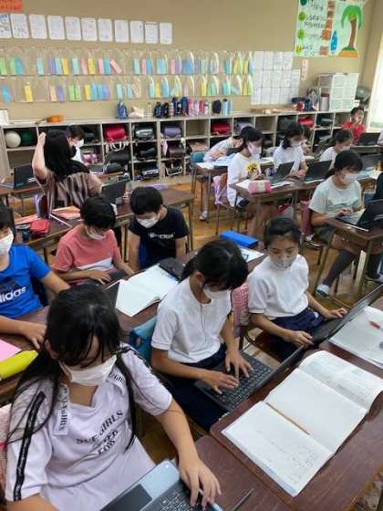 今日は、クロームブックを使って季語を選び、俳句作りに取り組みます。