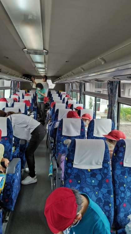 (バスに乗りました。シートベルト着用!)
