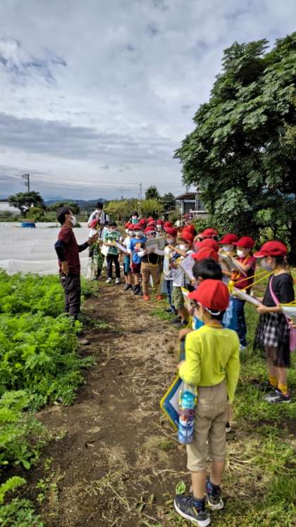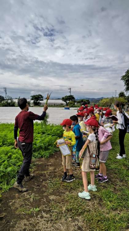 (広い畑を見に行きます。赤い人参!黄色い人参!)