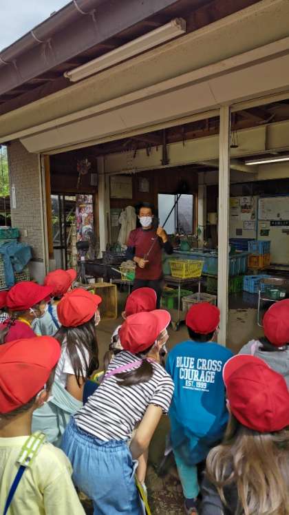 (収穫した野菜を集める作業場です)