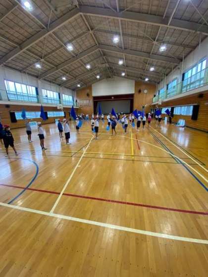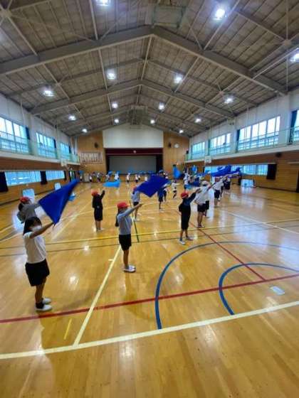 動きがそろって、旗を振る音も迫力があります。
