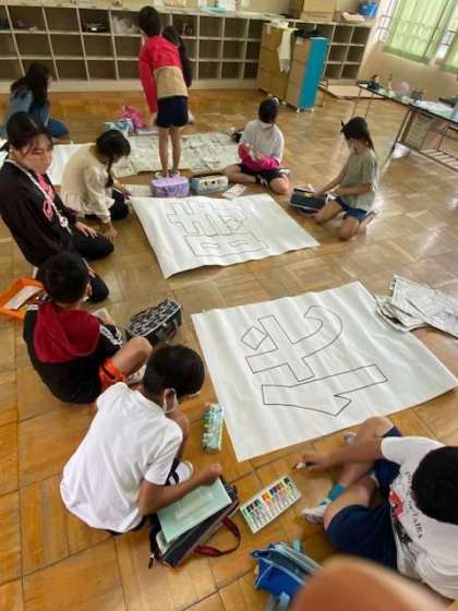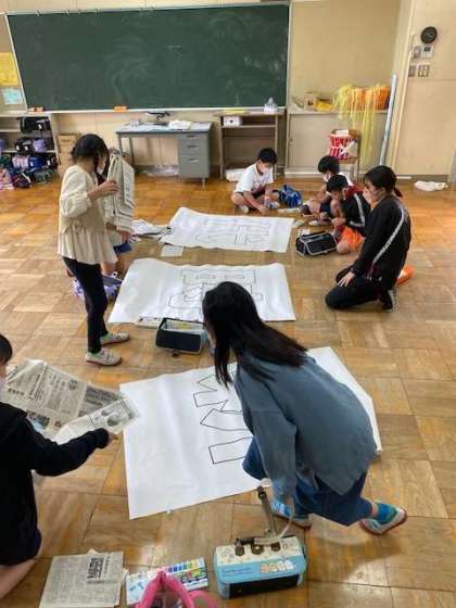中学年学習室では、4年生がスローガンづくりをひていました。