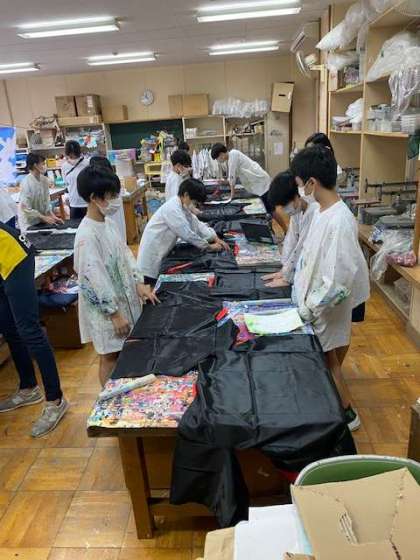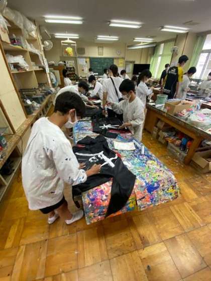 こちらは6年生がソーラン節の衣装に文字を書き入れていました。