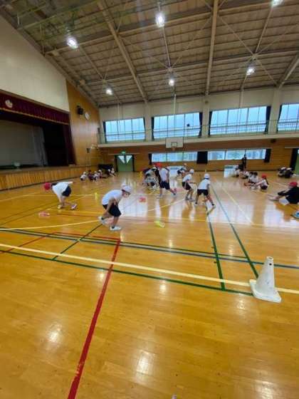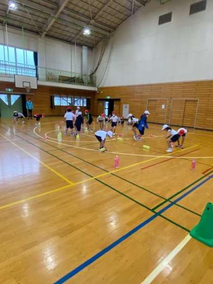 今日は雨のため、コーンはなしでペットボトルのみで練習です。
