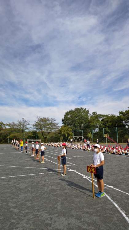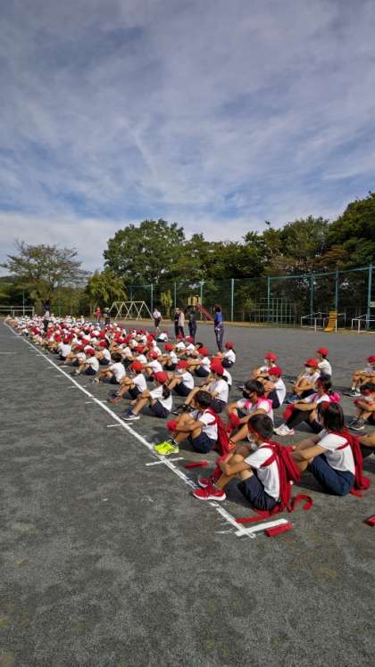 爽やかな秋空となりました。いよいよ運動会まであと4日。今朝は全校練習をしました。全校練習は今日とあさっての2回しかありません。全学年集中してよくがんばりました。