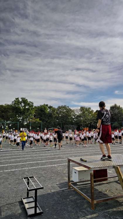 (運動会委員長の先生の号令で全校児童が動きます)