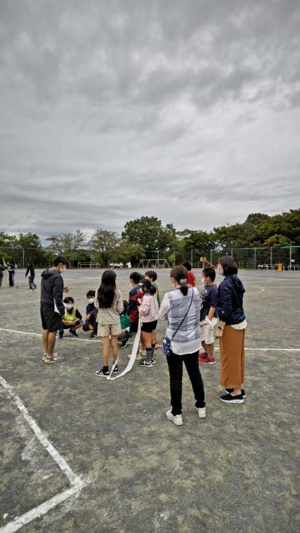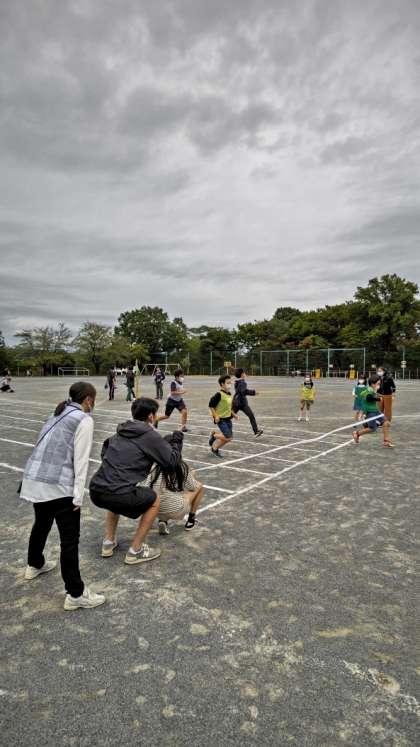 (プラカード係は判定係を兼ねています。徒競走の判定をする先生を助けます)