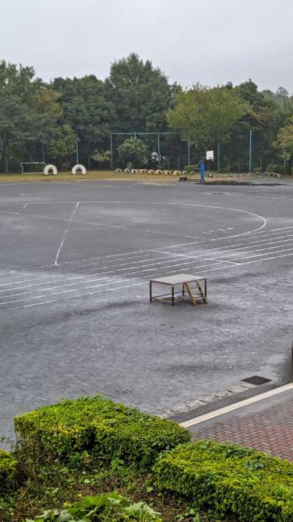 朝から冷たい雨が降っています。午前中、校庭での練習はできません。午後の前日準備もどこまで行うことができるのか心配です。