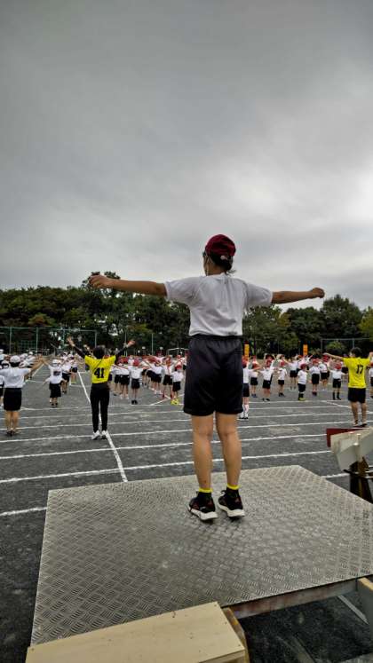 [準備運動]プログラム1番は準備運動です。体をしっかり動かして、これからの種目に備えましょう。