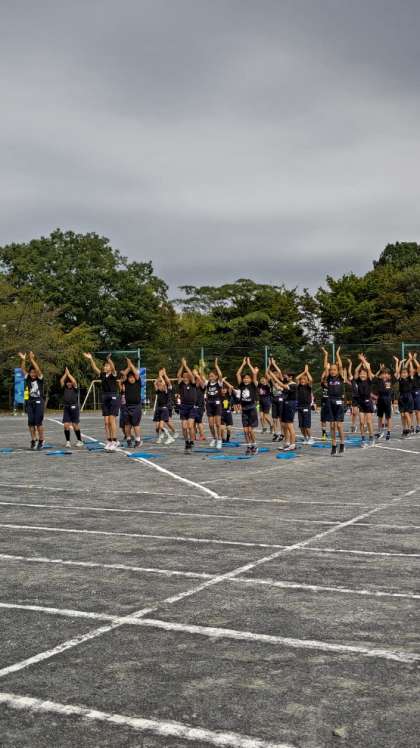 [中学年演技]鮮やかな青いフラッグを使った中学年の演技「最強」です。はじめは手拍子から。