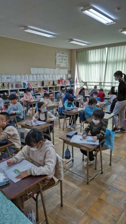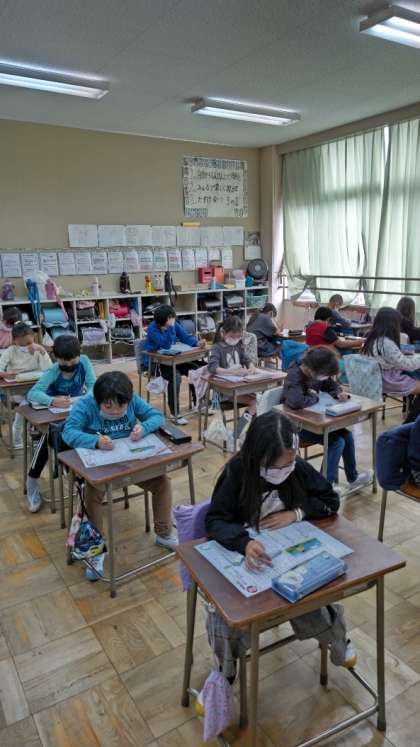 [3年生国語]テストをしています。「わすれられないおくりもの」のテストです。静かに集中してます。